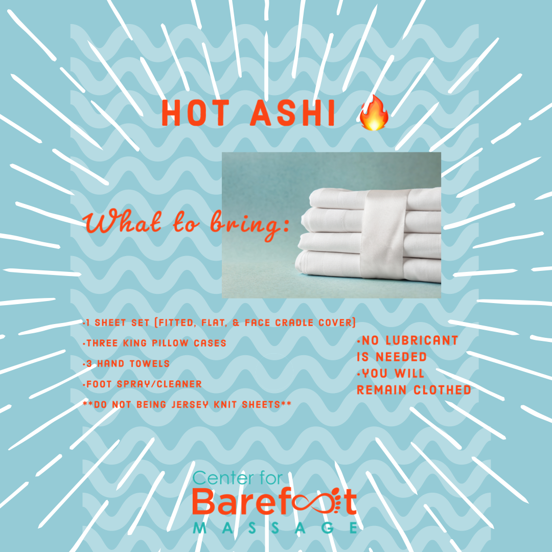 Turn up the heat! I'm a little partial to Hot Ashi as it's the first course I created for the Center for Barefoot Massage. That means I'm super passionate about the content in this course and I'm thrilled you get to hear it straight from me! I use pillows in my everyday life and in most every session. We'll discuss how and why to use heated pillows and also various ways to incorporate them into your practice. What you need for class: Pillows will be available for purchase and a special code...